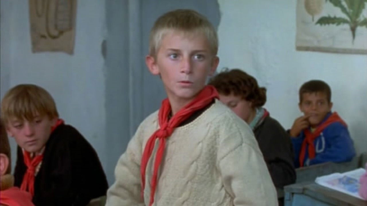 게르기 주바니 감독의 Slogans은 호자 시대 말기인 1970년대를 배경으로 한다. 젊은 교사 안드레가 산골 마을에 부임하면서 겪는 부조리를 그린 이 영화는 블랙코미디의 형식을 빌려 전체주의의 광기를 해부한다. 마을 사람들은 산비탈에 돌로 만든 거대한 구호를 새기는 일에 동원되고, 누가 더 충성스러운 문구를 만드는지 경쟁한다. 주연 배우 아르탄 이마미는 순진한 지식인이 체제의 부조리 앞에서 느끼는 당혹감을 절제된 연기로 표현했다. 카메라는 황량한 산과 무의미한 구호들을 교차시키며 이념의 공허함을 드러낸다.